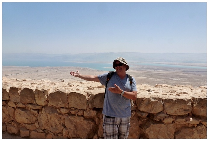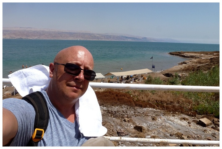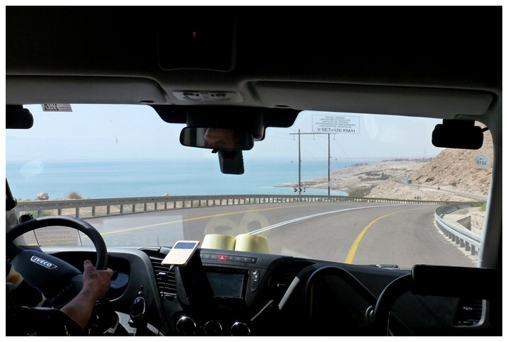 First view of the Dead Sea, 400 metres (1300 ft) below sea level!